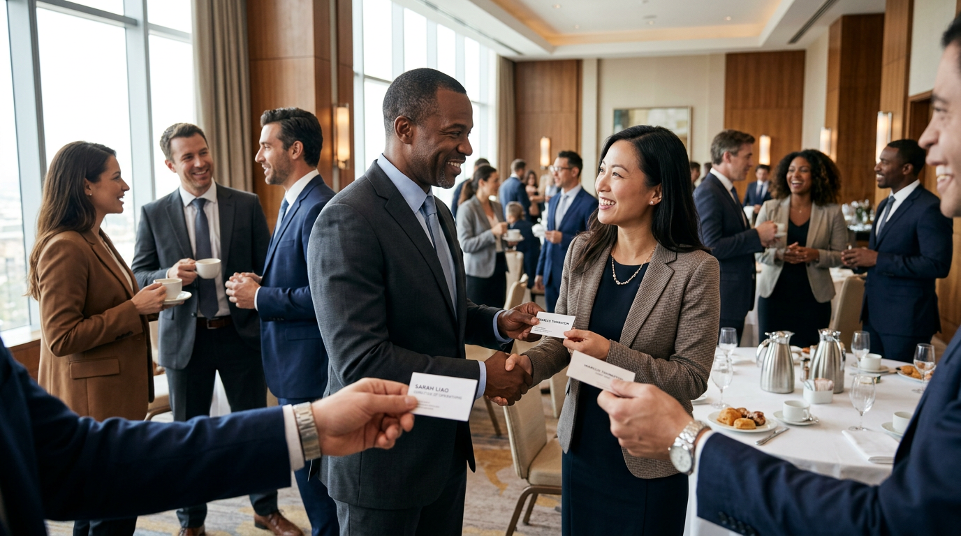 Am Ende nehmen Sie nicht nur Visitenkarten mit — sondern konkrete Verabredungen und Empfehlungen.